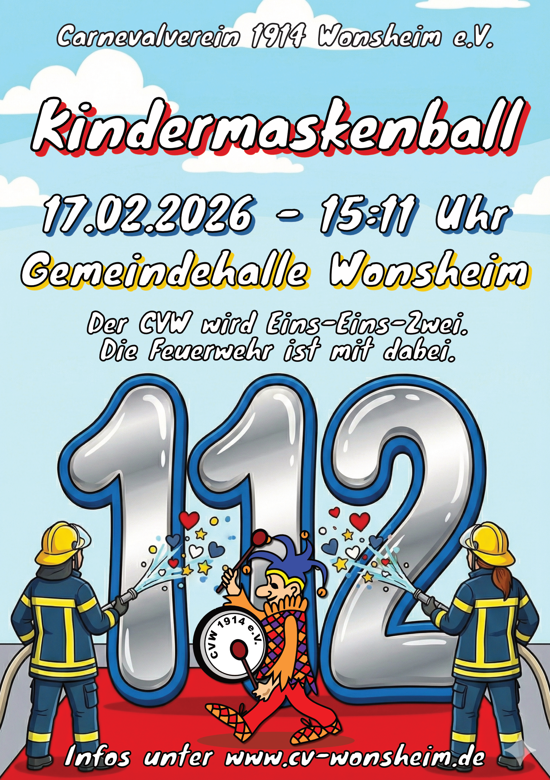 Kindermaskenball des CVW Am 17.02.2026 Beginn 15:11 Uhr In der Gemeindehalle Wonsheim